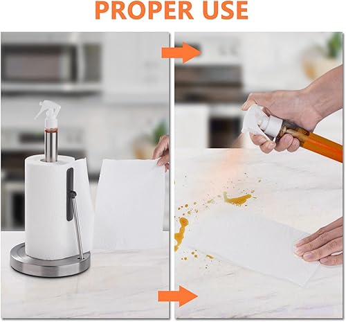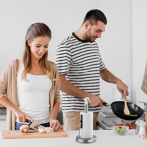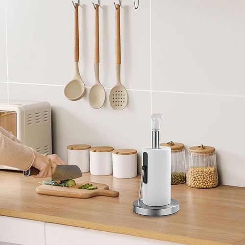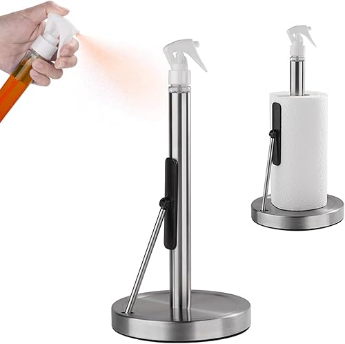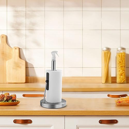 Porte-Rouleau De Cuisine Vertical avec Bras De Tension Et Vaporisateur, Porte-Rouleau De Cuisine en Acier Inoxydable Organiseur De Cuisine, Aide De Cuisine Multifonctionnelle pour Essuie-Tout