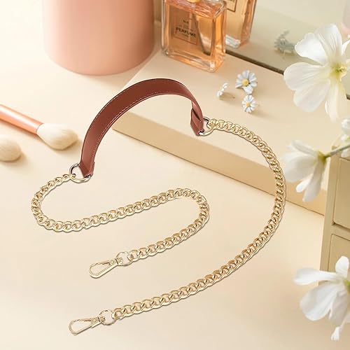 Sangle de rechange 51.2 pour sacs à bandoulière, cuir synthétique marron et chaîne en métal doré de luxe, design élégant et facile à remplacer, marron, taille unique