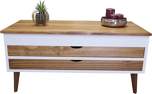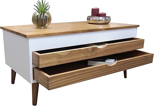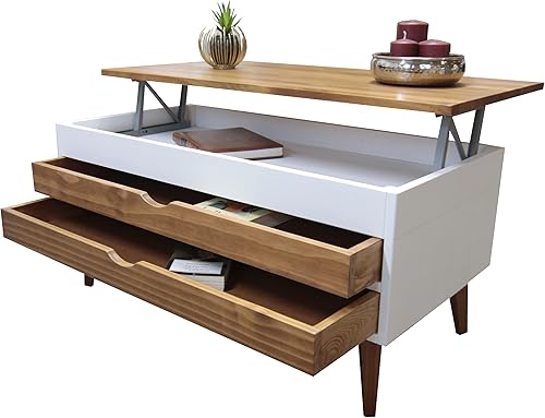 LoMasCasa - Table basse relevable modèle Luzia 5 avec deux tiroirs coulissants de couleur blanche et bois couleur noyer. Dimensions 100 x 50 x 47 cm