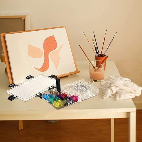 OVNSHVN 2 PièCes BoîTe de Palette de Peinture 24 Puits Palette de Peinture HerméTique Aquarelle Peinture Conteneurs de Stockage Rester Humide Organisateur de Peinture