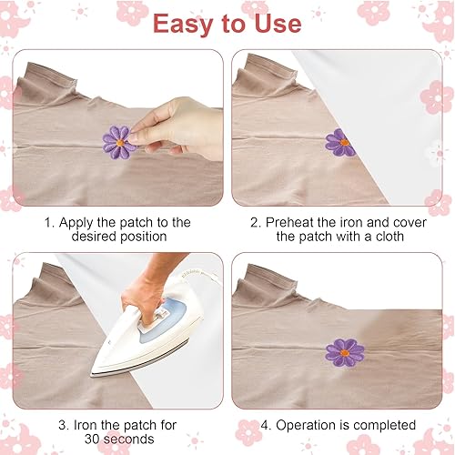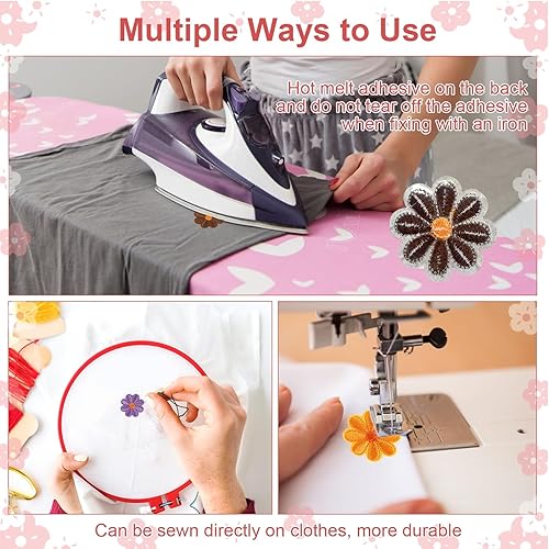 72 Pièces Patch Thermocollant Vêtements, Patch Thermocollant Fleur Ecusson Thermocollant, Broderie Florale Colorée Écusson Thermocollant pour Vêtements Sacs à Dos Vestes