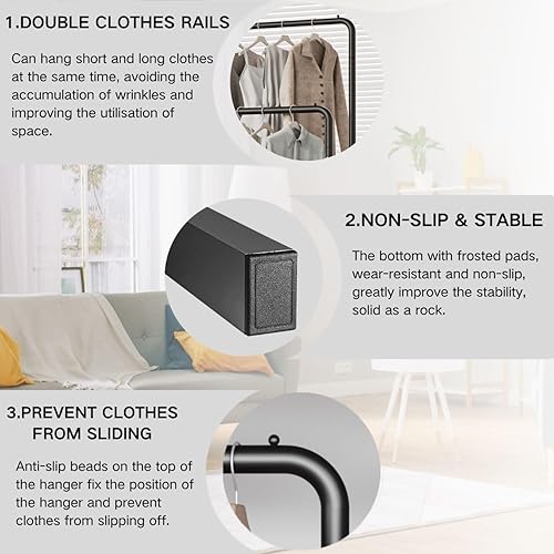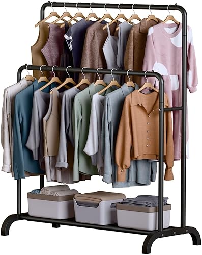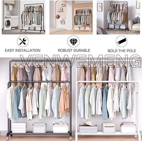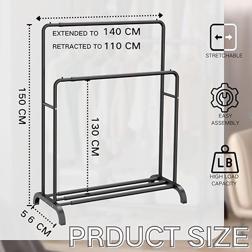 Venwemong Tringle à vêtements extensible - 150 x (110-150) x 56 cm - Avec 2 tringles - Pour manteaux, jupes, chemises, pulls - Noir