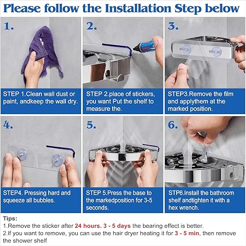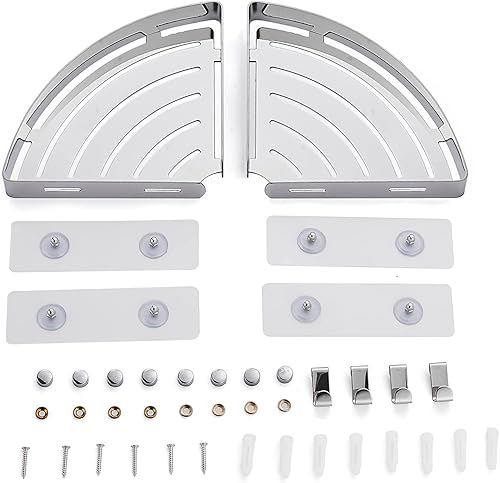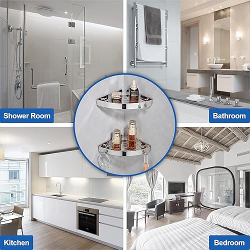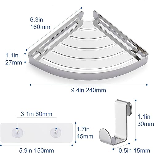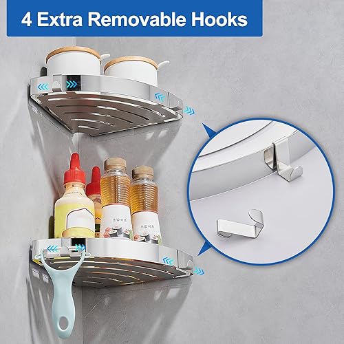 Hoomtaook Etagère Douche d'angle sans Perçage,Rangement Salle de Bain Douche Accessoire Salle de Bain Support Porte Savon Douche Antirouille Acier Inoxydable SUS304 Lot de 2 Pièces Crochets, Argent