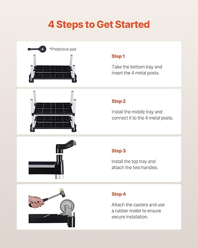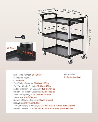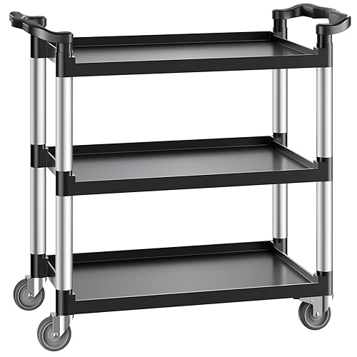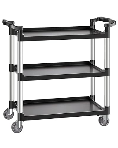VEVOR Chariot de Service, 1060x490x980 mm, Desserte à roulettes Utilitaire en Plastique à 3 Niveaux, avec Roues Pivotantes 360° (2 avec Freins), pour Entrepôt, Bureau, Maison, Restaurant, Cuisine