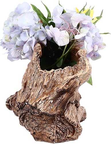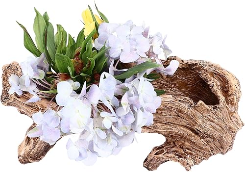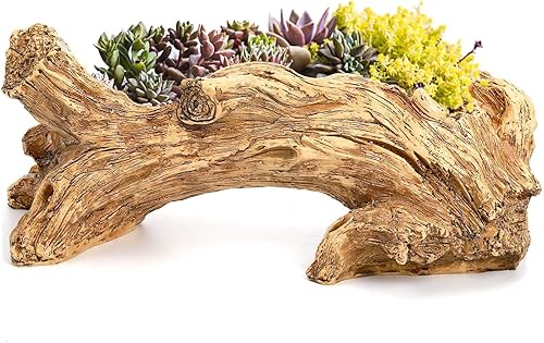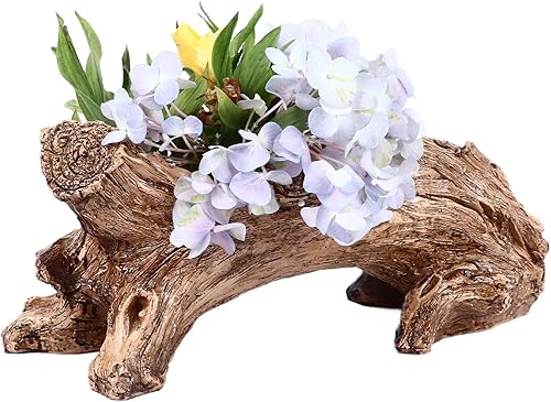 Tyenaza Jardinière Artificielle en Bois Flotté, Jardinière Succulente en Résine, Souche d'arbre Vintage, Bûche comme Pot De Fleurs pour Décoration De Jardin De Maison (37,1 X 13 X 10,9 Cm)