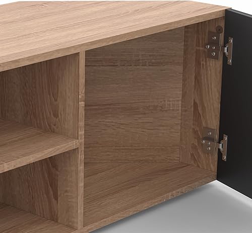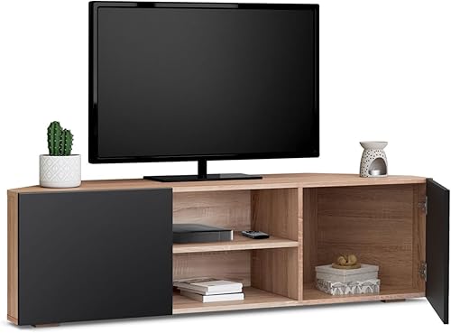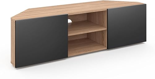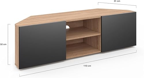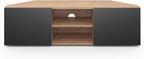 IDMarket - Meuble TV 110 cm d'angle ELI Bois façon hêtre Portes Noires