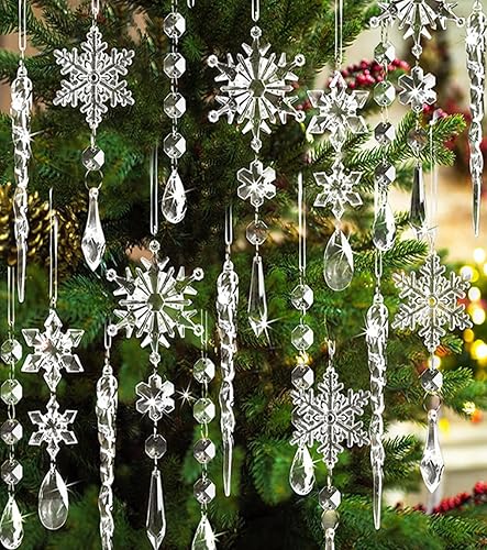 Décoration de Noël, décoration de Sapin de Noël, Pendentif en Forme de Flocon de Neige Noël en Cristal, Pendentif de décoration de Sapin de Noël, Pendentif de Noël en Acrylique DIY, 18 pièces