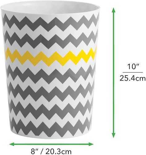 mDesign Poubelle en plastique pour bureau, cuisine ou salle de bain – Idéal poubelle au design moderne – Design Zigzag – Jaune/gris