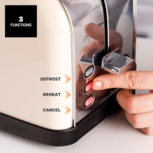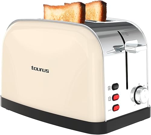 Taurus - Grille-pain Vintage II Cream 950W | 2 fentes 135x35 mm | 7 niveaux | 3 fonctions | Inox | Auto-centrage | Ramasse-miettes | Élévation haute | Range-cordon | Crème