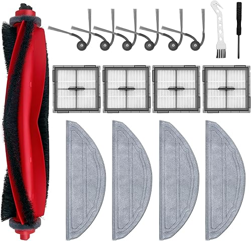 Lot de 17 pièces de rechange pour robot aspirateur Roborock Q10 S5/Q10 S5+/Q10 X5/Q10 X5+, kits d'accessoires, 1 brosse principale, 4 filtres HEPA, 4 tampons de serpillère, 6 brosses latérales, 1