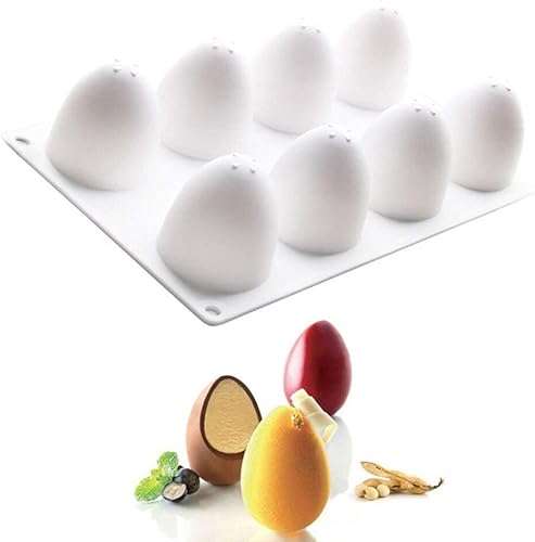EudoER Moule en silicone pour œufs de Pâques, 8 cavités ovales en forme d'œuf en silicone pour décoration de gâteau, chocolat, bonbons, gelée, moule pour muffins, pain, etc.