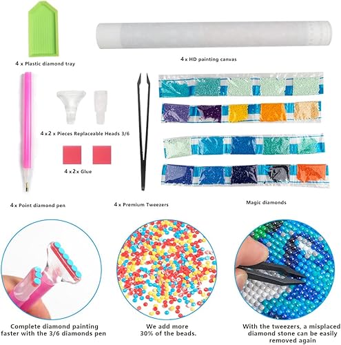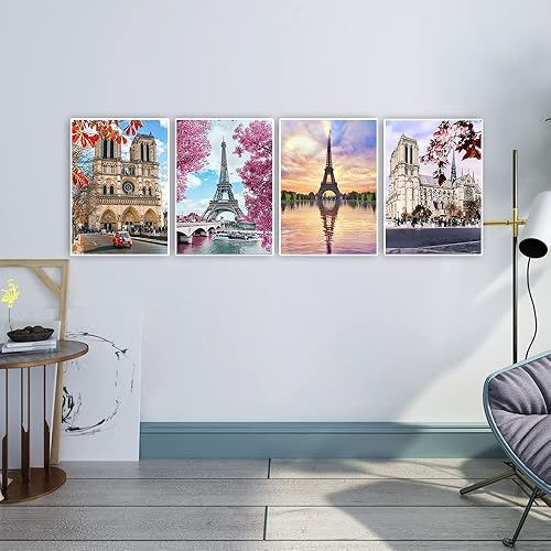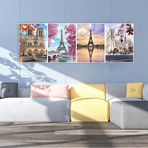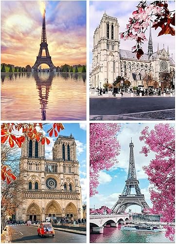 DCIDBEI 30x40CM 4 pièces Kit Peinture Diamant Ronde,Diamond Painting 5D plage Paysage Voyage pour adultes Château Baroque Cadeau Anniversaire Fête Mariage décoration murale-Architecture du Monde