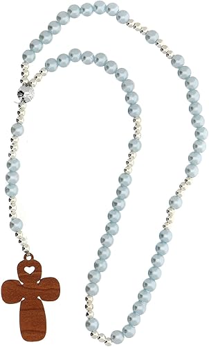 Holyart Chapelet Verre nacré Bleu Clair avec prière Italien pour Baptême