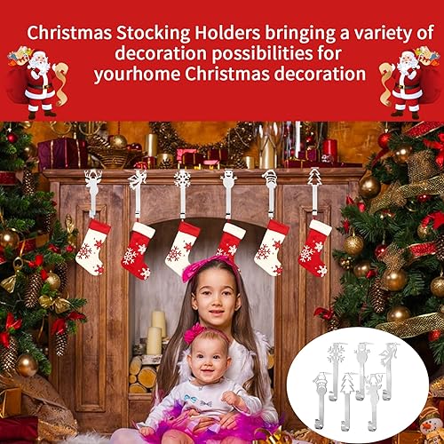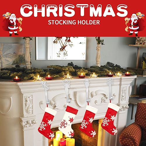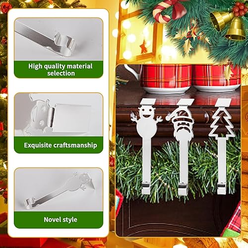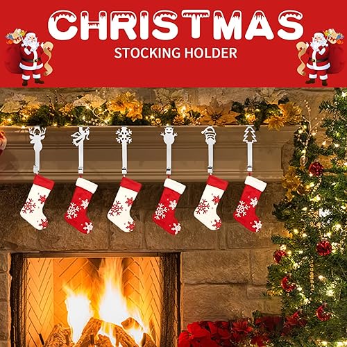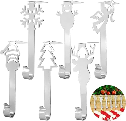 Valicaer 6PCS Crochets de Chaussettes de Noël en Métal Noël Support de Décoration Cintres de Bas D'éléments de Noël Crochet pour Décoration de Noël, Neige Renne Bonhomme Neige Cintre Support (Argent)
