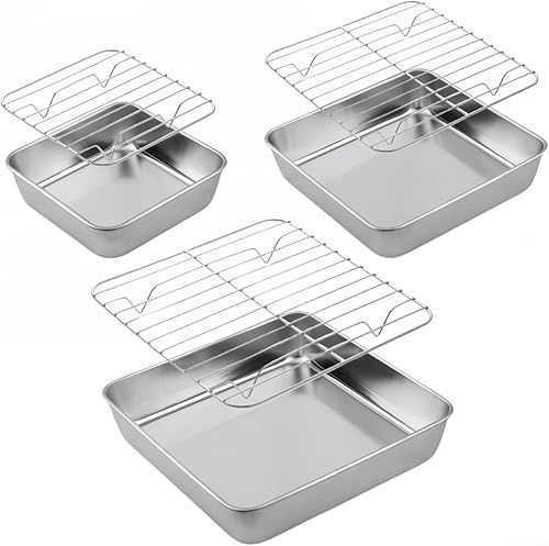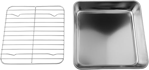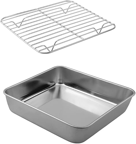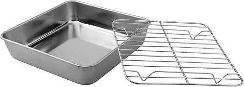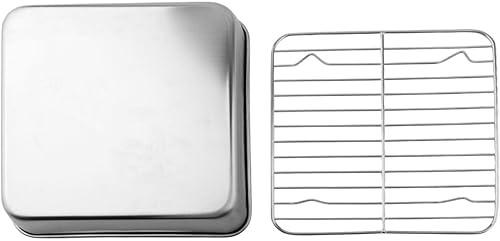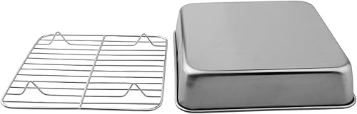 ComfyHarbor Ensemble de cuisson en acier inoxydable avec grille de refroidissement, plaque à rôtir rectangulaire avec grille de four, passe au lave-vaisselle (15 cm)