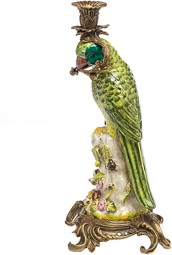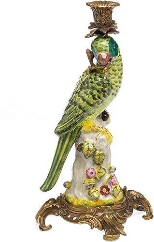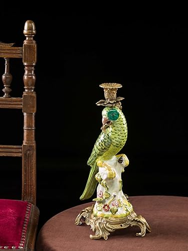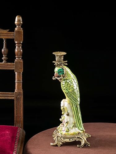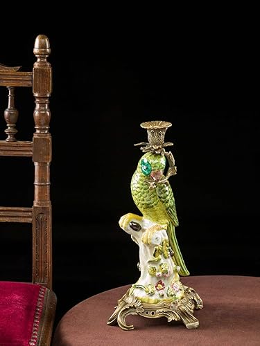 aubaho Lot de 2 bougeoirs - Motif Perroquet - Style Antique - Porcelaine/Bronze