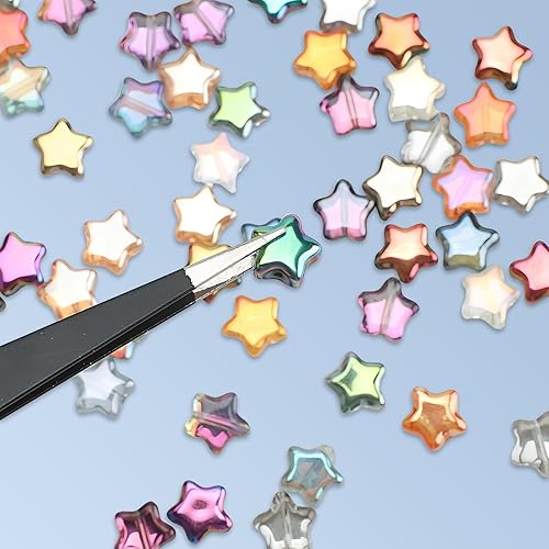 Lot de 100 perles colorées en forme d'étoile de 8 mm pour bracelets, perles en verre en forme d'étoile, faciles à bricoler, en forme d'étoile, couleurs pour bracelets, colliers, boucles d'oreilles