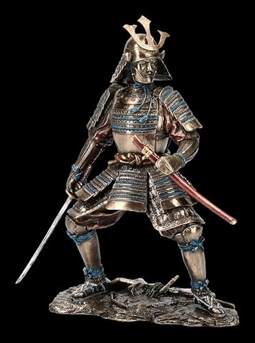 Unbekannt Samurai Figurine - Guerrier en Armor avec Deux Epées Japonais Guerrier, Figurine de Décoration, Décoder L'Article, Bronze.optik, H 23 CM
