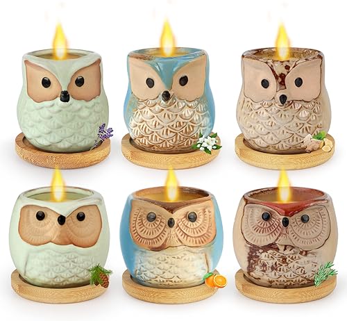 Kinforse Bougies Parfumées en Forme de Chouette - Lot Cadeau Femme de 6 Pièces - Idée Cadeau Anniversaire Originale - Parfums Naturels & Longue Durée 180h (bougie parfumée mixte)