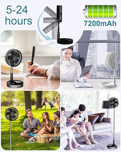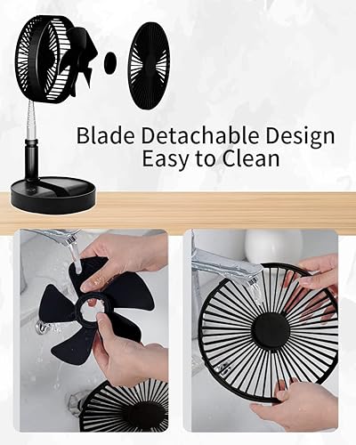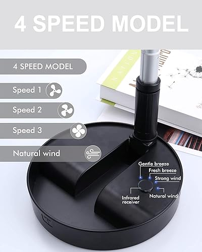 UNITEDTIME Ventilateur de bureau et de table, ventilateur de voyage portable, alimenté par piles ou USB, hauteur réglable et pliable avec télécommande minuterie, 4 réglages de vitesse (rose)