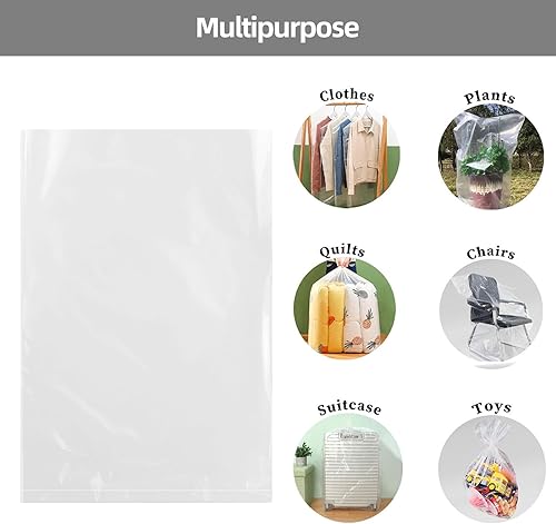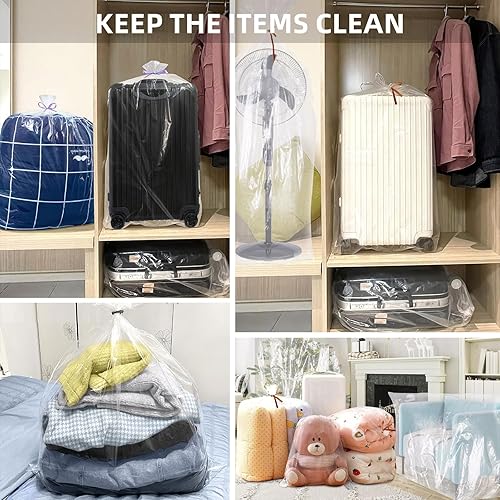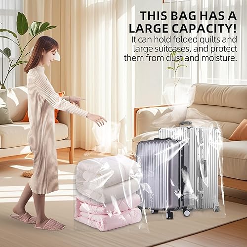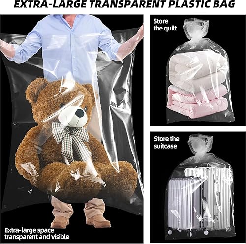 Lot de 5 sacs de rangement géants en plastique transparent extra larges - 100 × 150 cm - Sacs de déménagement réutilisables pour couettes, vêtements, literie, valises