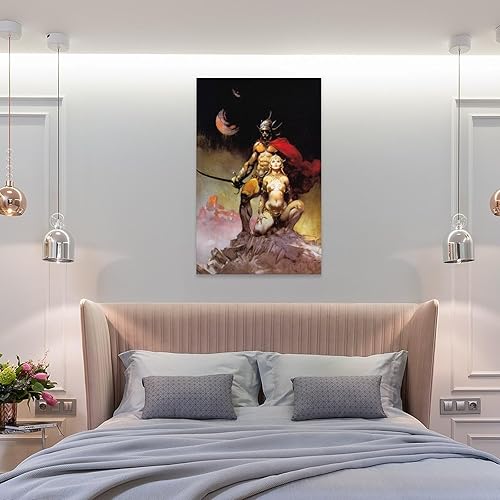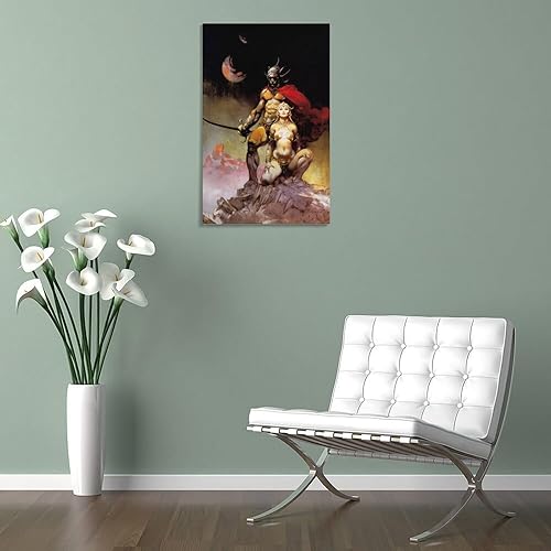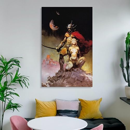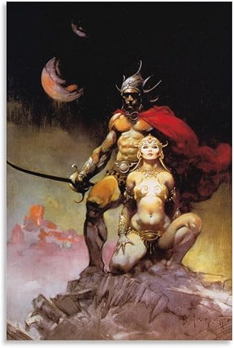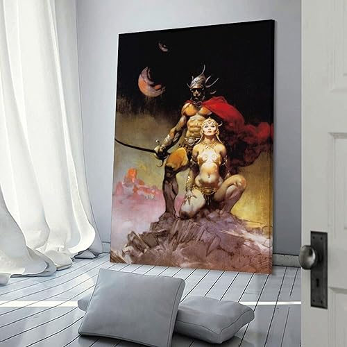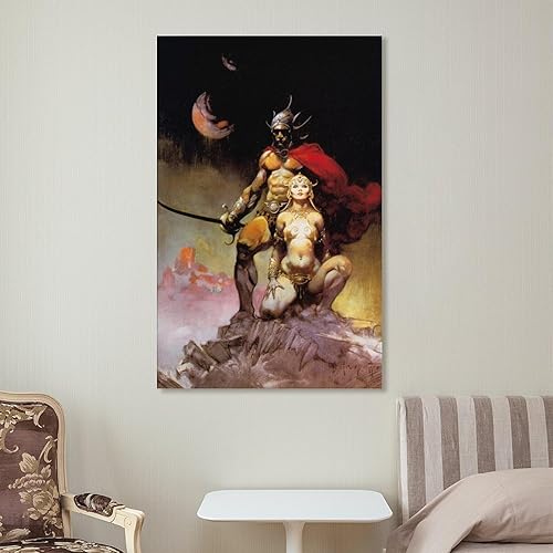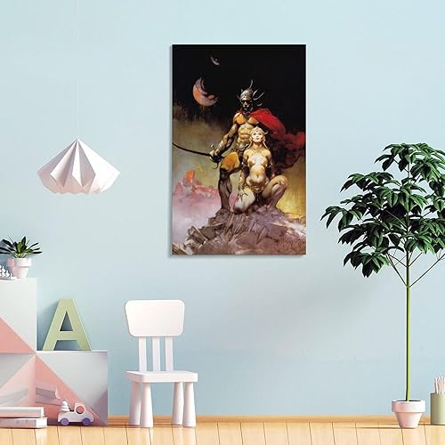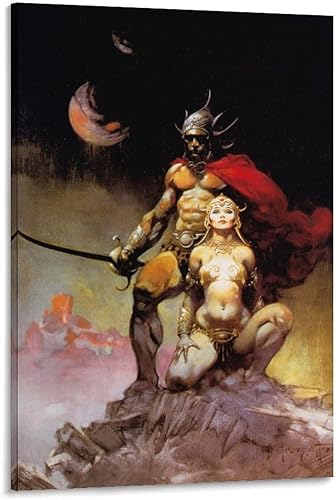 Impression sur toile de Frank Frazetta A Fighting Man of Mars - Illustration fantastique - Décoration murale moderne - 30 x 45 cm