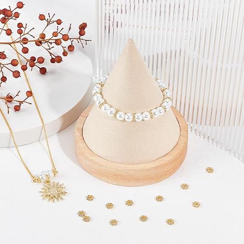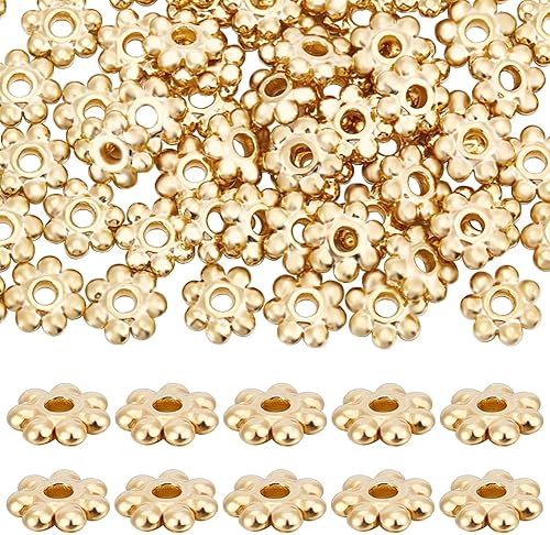 Beebeecraft 1 boîte de 80 Perles D'Espacement en Forme de Fleur en Acier Inoxydable Plaqué Or 18 carats de 6 mm Rondes en Forme de Marguerite sur Les Côtés pour la Fabrication de Bijoux Bracelets
