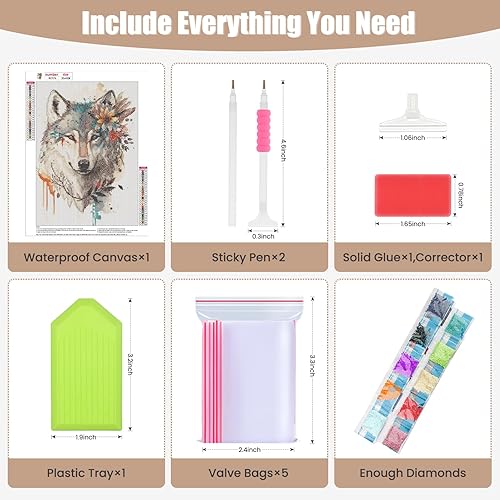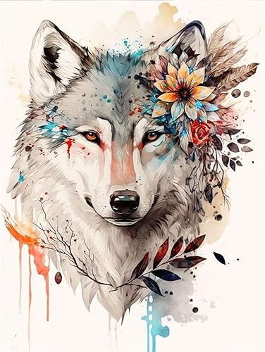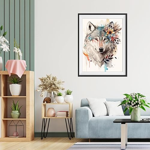 TOSTOG Loup et Fleur Diamond Painting Kit Adulte,5D DIY Broderie Diamant Painting Kit Complet,Peinture Diamant Artisanat Strass Point de Croix Painting pour Adultes Décoration Intérieur 30x40cm