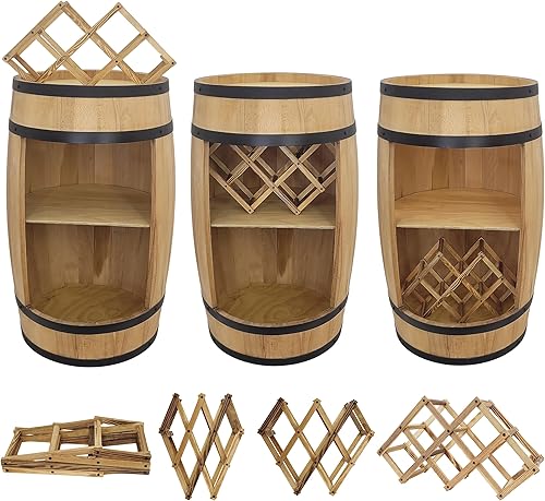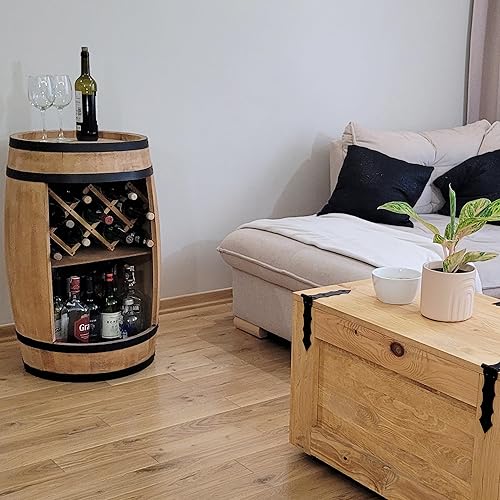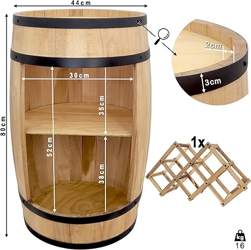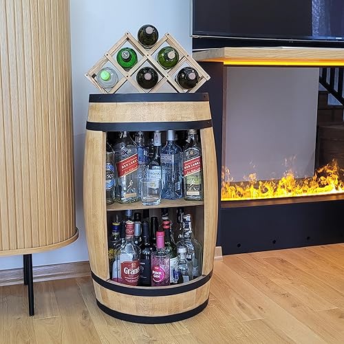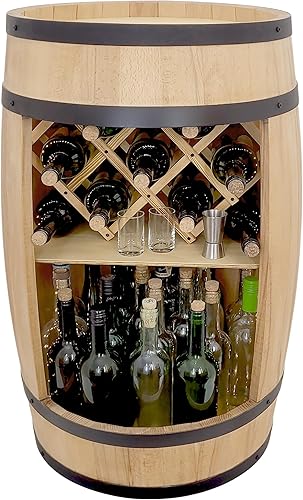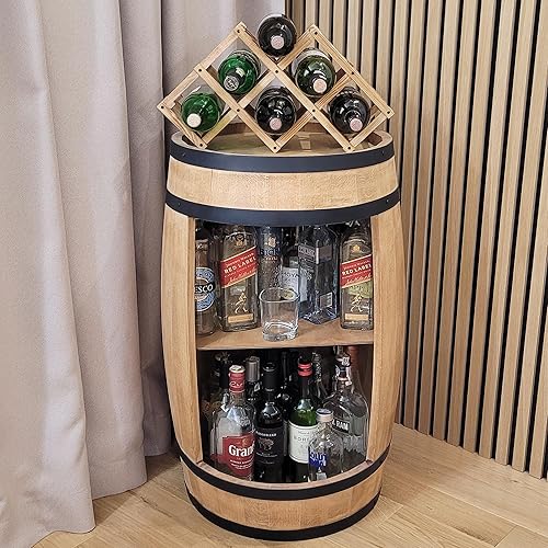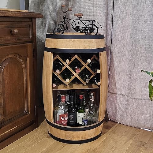 WEECO Tonneau Bar en Bois avec Casier à Vin – Meuble Bar Rustique – Armoire à Bouteilles – Bar en Fût de Vin – Décoration pour Salon – 80x50cm Chêne Clair