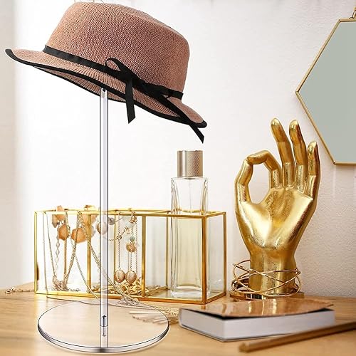 Yuemsh Supports de Chapeau en Acrylique Transparent, Support de Présentoir de Chapeau, Support de Chapeau pour Affichage, avec Support de Rangement pour Casquette de Baseball à Base Ronde