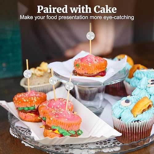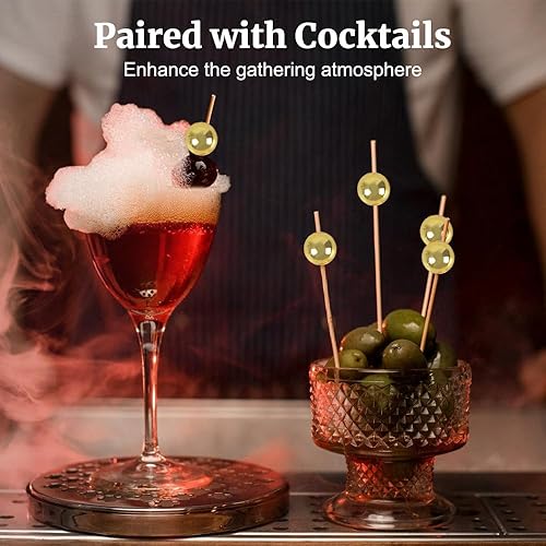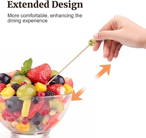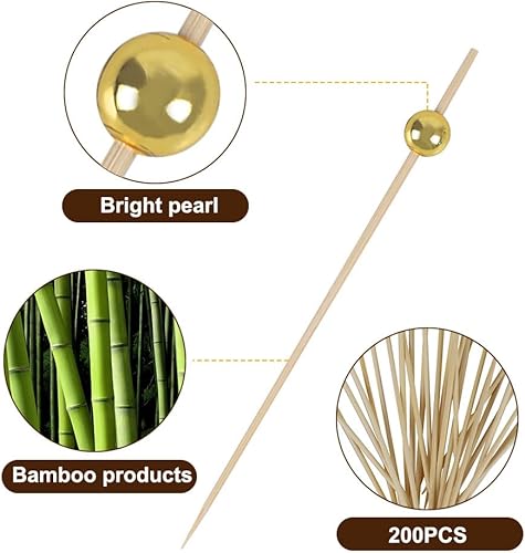 MiOYOOW Pics à Cocktail en Bois, 200 Pcs 12cm Cure-Dents à Cocktail de Fruits, Pique Aperitif Perles en Or/Argent/Blanche, pour Aliments Gâteaux Boissons Fruits