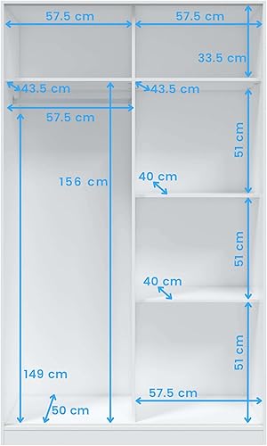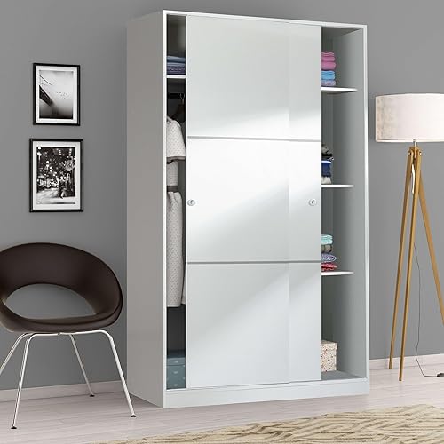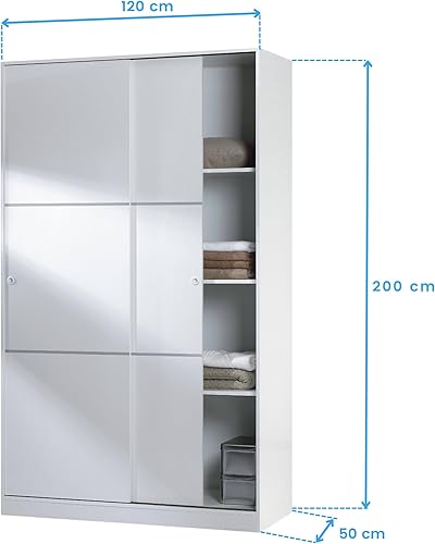 Habitdesign Armoire avec 2 Portes coulissantes et étagères, pour Chambre à Coucher ou Chambre d'amis, Finition Blanc Brillant, Taille : 120 cm (L) x 200 cm (H) x 50 cm (P) FOARM020BO