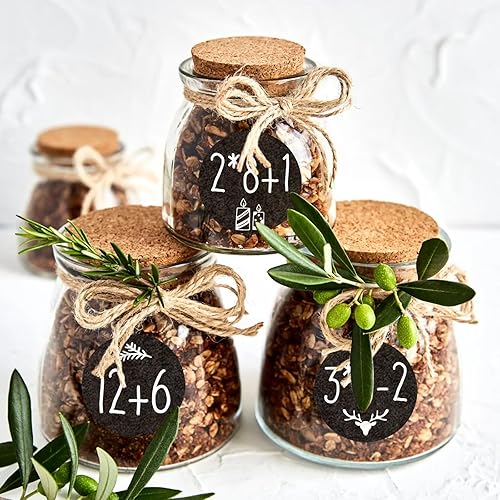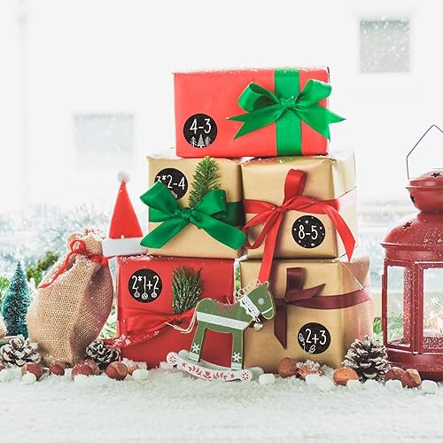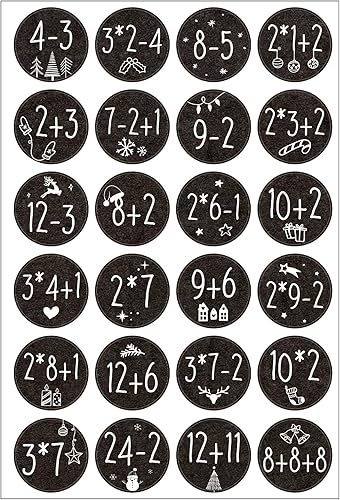 1-24 3.8CM Autocollants de Chiffres de Calendrier de l'Avent avec Problèmes Arithmétiques Étiquettes Stickers Rond Sapin Bonhomme de Neige Cloche Décoration DIY Cadeau pour Fête Avent de Noël