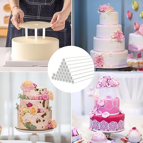 Dowels pour Gateau 30 Pièces Tiges de Goujon Gâteau En Plastique Colonnes Creuses Réutilisables pour Utilisé Pour La Construction Et L'empilage de Gâteaux en Couches Disque Acrylique Patisserie, 24 Cm