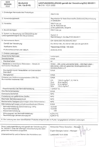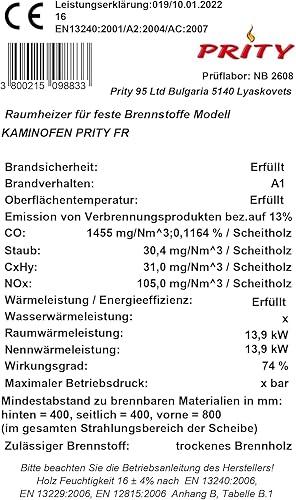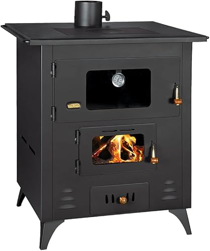 Cuisinière à bois Prity, modèle 1P50R, puissance thermique 14 kW, four, plaque chauffante, pieds