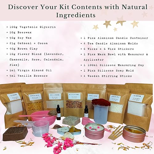 KIT SPA À LA MAISON | Set DIY Bougies Parfumées, Savons Artisanaux, Masques 100% Naturels | Cadeau pour la Fête des Mères | Activité Créative pour Femmes | Détente avec Ingrédients BIO
