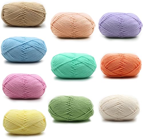 10 pièces x 50g Fil à Tricoter à la Main Fil de Coton, Fil à Crocheter,Avec de Fil de Coton au Lait, Pour le Crochet et L'artisanat, Convient aux Débutants, Facile D'entretien, 10 Couleurs