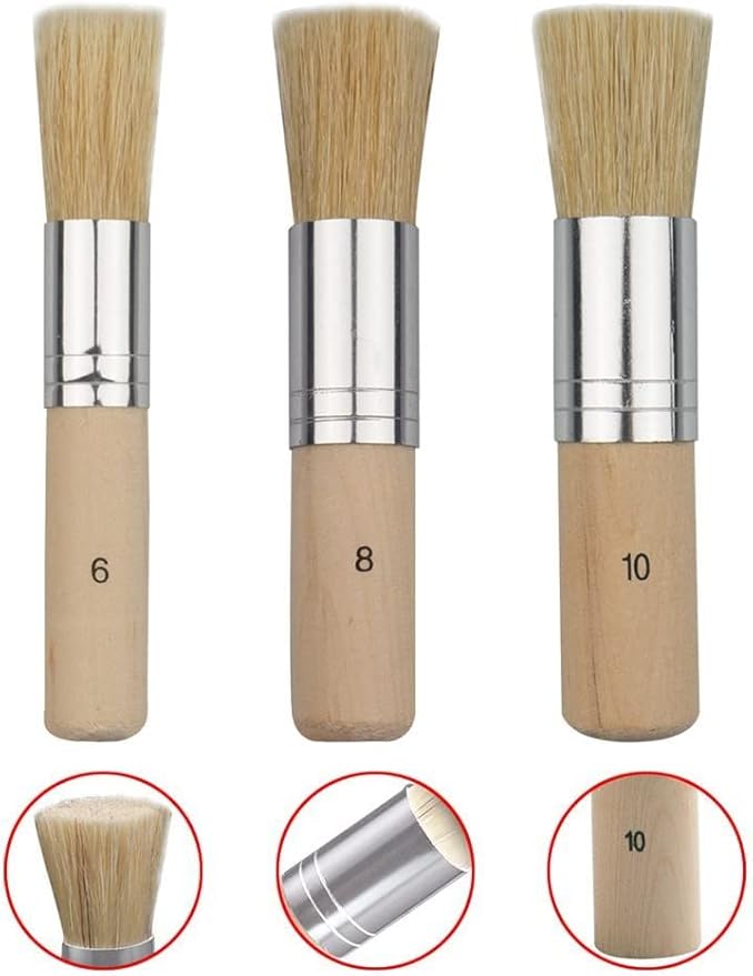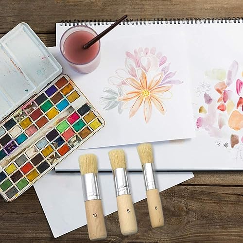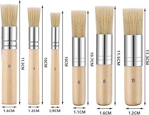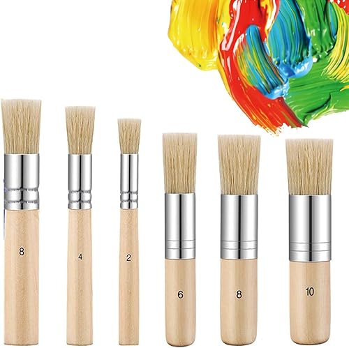 Pinceaux à Pochoir en Bois Pinceaux à Craie Ronds Pochoir, Brosse à Moule en Bois, Brosse Naturelle Acrylique, Peinture à l'huile, Aquarelle, Fabrication de Cartes et Bricolage, 6 pièce