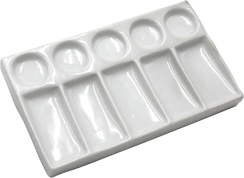Paintersisters Palette en porcelaine - 10 cavités pour aquarelle - 19 x 11 x 2,5 cm - Peinture à l'huile, acrylique - Plateau en céramique blanche