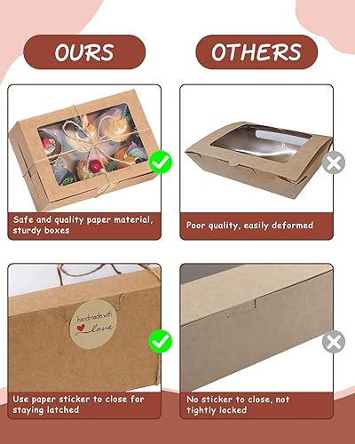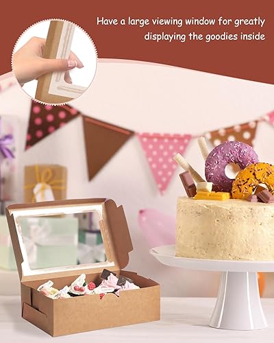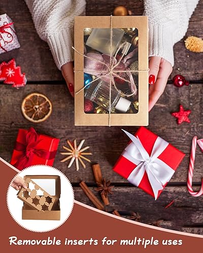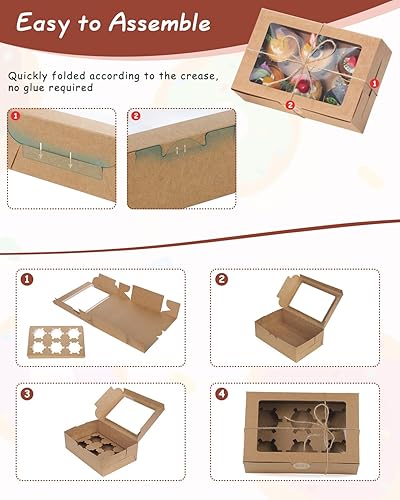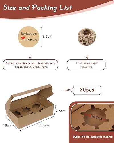TsunNee Lot de 20 boîtes à cupcakes en papier kraft à 6 trous avec fenêtre, réutilisables pour cupcakes, muffins, friandises, boîtes cadeaux jetables pour boulangerie, mariage, anniversaire, Noël