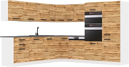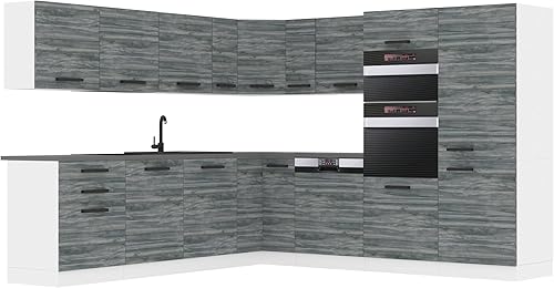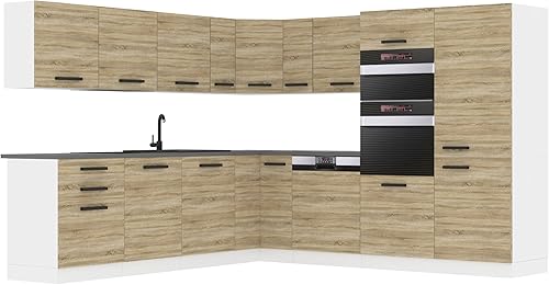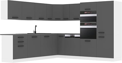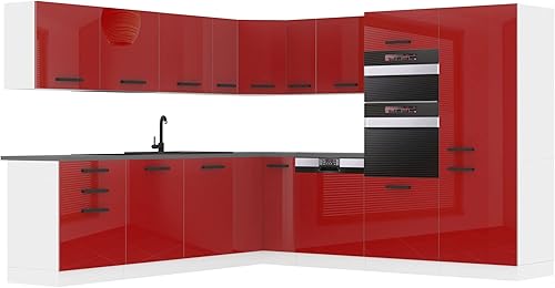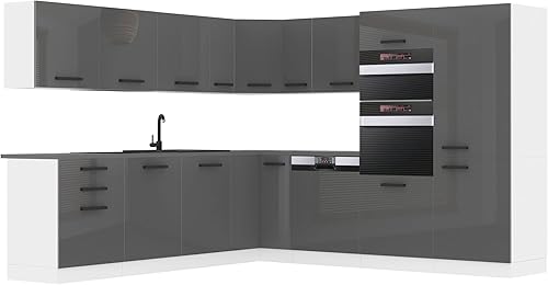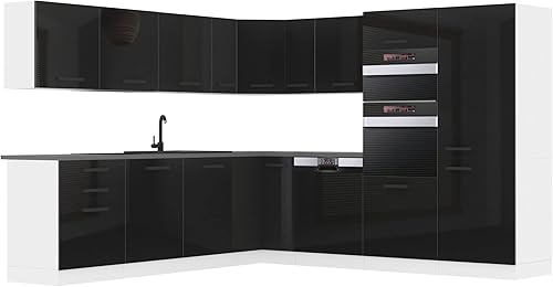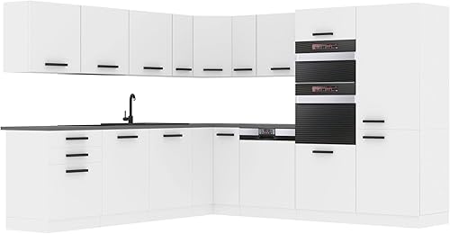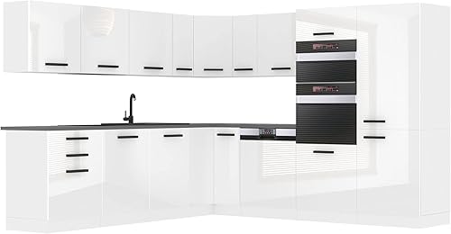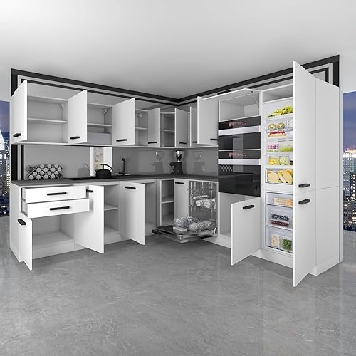 Belini Cuisine Équipée Complète Jane - L-Forme Sans Plan de Travail, Blanc Très Brillant