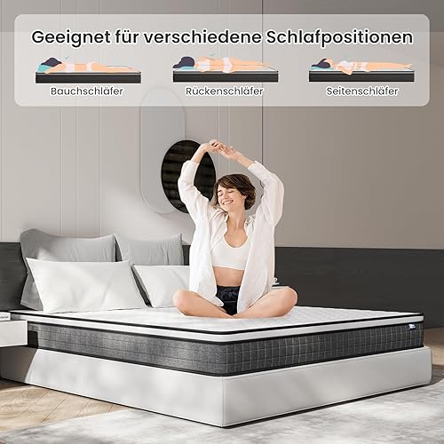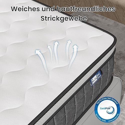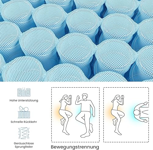 BedStory Matelas à ressorts ensachés 160 x 200 cm Dureté H3/H4 20 cm Certifié Oeko-Tex Gris foncé