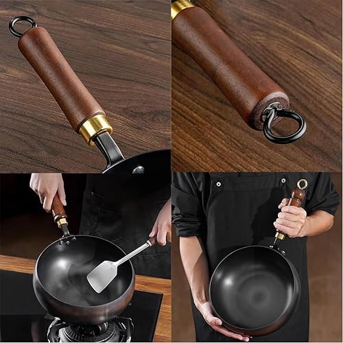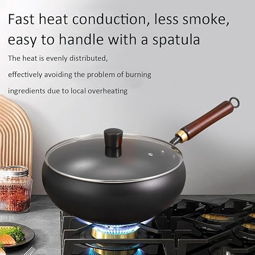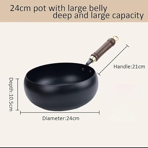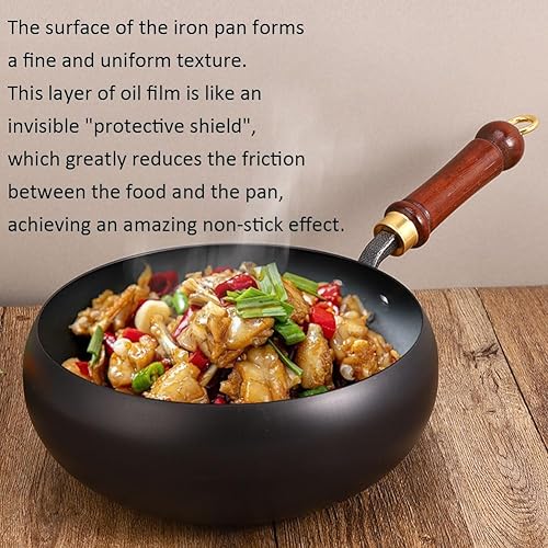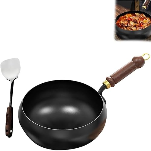 Qixfyze Poêle Japonaise en Fer forgé avec Couvercle en Bois, poêle en Fer sans revêtement, poêle antiadhésive, poêle à Frire en Fer de Haute pureté avec Fonction de Maintien au Chaud(Single,28cm)