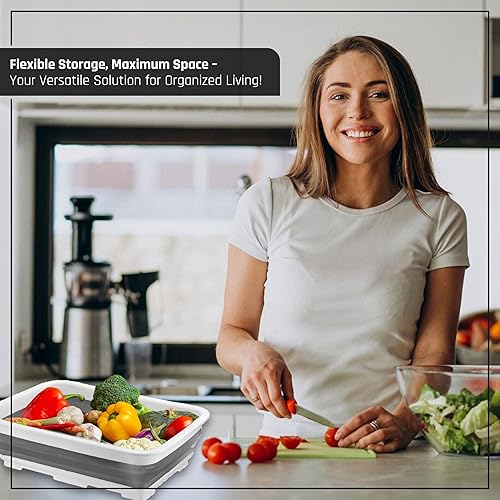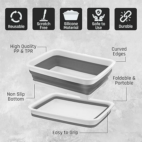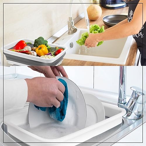 HOMESHOPA Bassine à vaisselle rectangulaire pliable, 10 litres, rangement compact, économie d'espace, bol d'évier de cuisine, portable pour camping en plein air (gris)