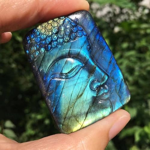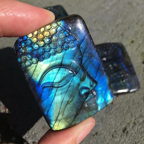 Plein de textures Cristal 1pc Pierres de cristal naturelles Sculptures Bleu Labradorite Bouddha Flashy Labradorite Pierres précieuses brutes Quartz Sculpté Pendentif Cadeaux Convient for la décoration