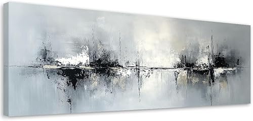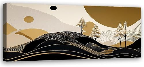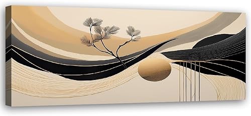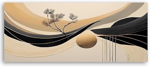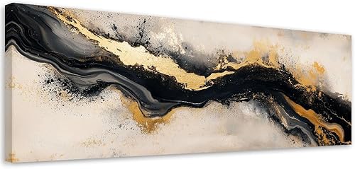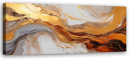 Feeby - Impression sur Toile - Tableau Decoration Murale - Abstrait Gris Or Marron Lofts - 120x40 1partie - Salon Peinture Tableaux - Moderne Reproductions Tableaux - Décoration Chambre