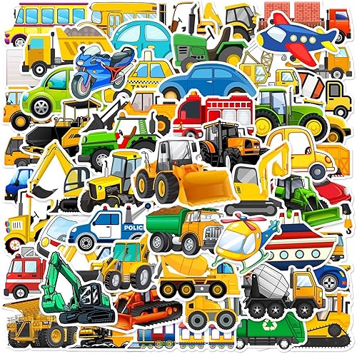 2 X 60 Pièces Autocollants pour Pelleteuses, Autocollants Enfants Véhicules, Excavatrice Autocollant Enfant, Tracteur Stickers, Autocollant Transport pour Valise, Skateboard, Bouteille D'eau