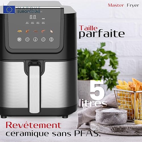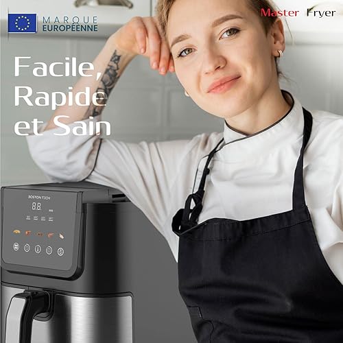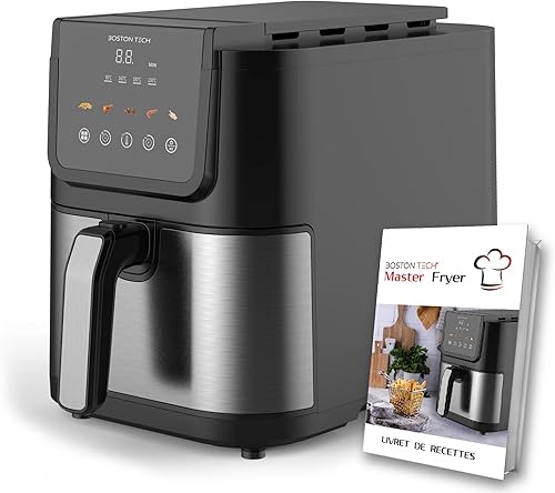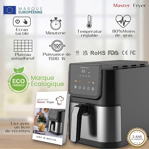 Boston Tech® Friteuse à Air Master Fryer 5L | Air fryer 1500W + 5 Programmes + Commande Tactile + Température Réglable | Panier Céramique sans PFAS + 35% de Capacité en Plus + Minuteur Intégré