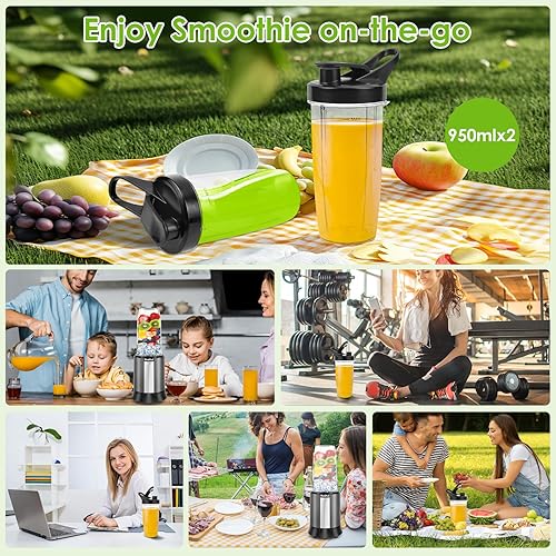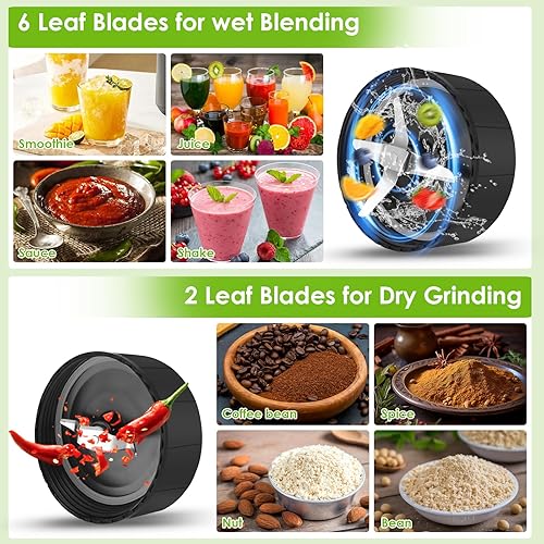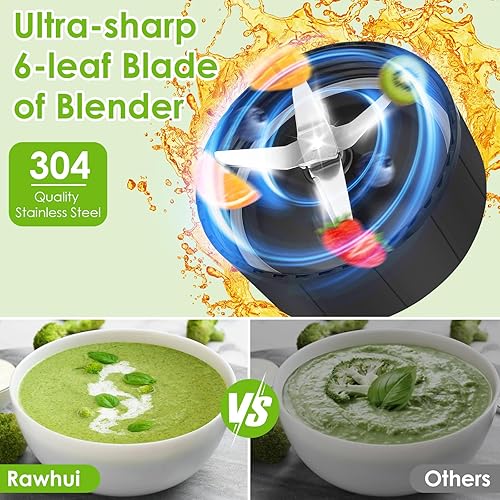 Rawhui Mixeur à smoothie, 1300 W, mixeur électrique, avec 2 bouteilles et 6 lames en acier inoxydable, mixeur haute performance pour cuisine, bouillie de bébé, shakes