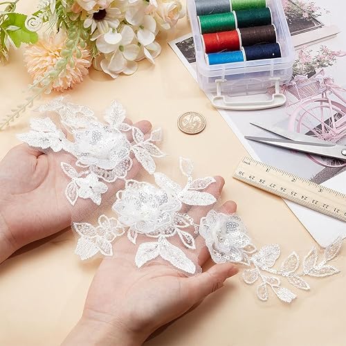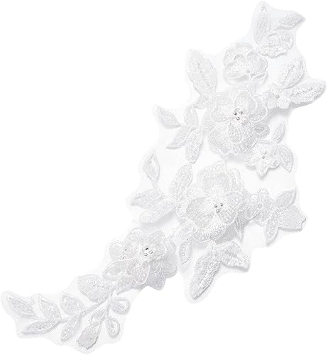 MAYJOYDIY Applique en Dentelle à Paillettes 3D Blanche pour Robe de Mariée Broderie Florale Perlée Applique en Dentelle Brodée en Relief pour Robe de Mariée Chapeau Robe de Mariée Décoration DIY